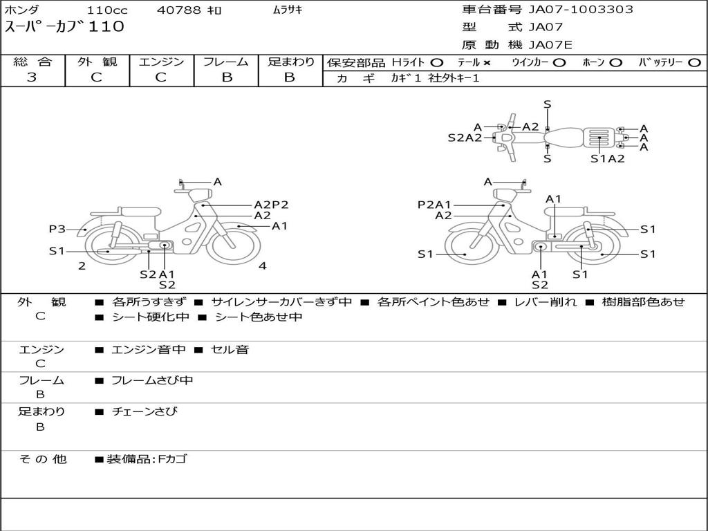 | Номер рамы / VIN | JA07-1003303 |