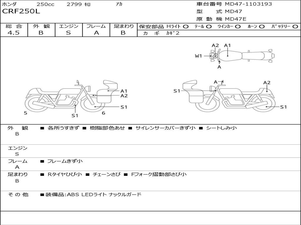 | Номер рамы / VIN | MD47-1103193 |