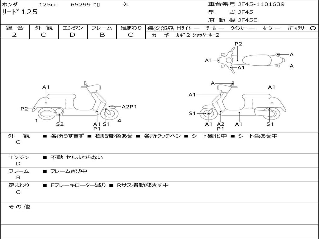 | Номер рамы / VIN | JF45-1101639 |