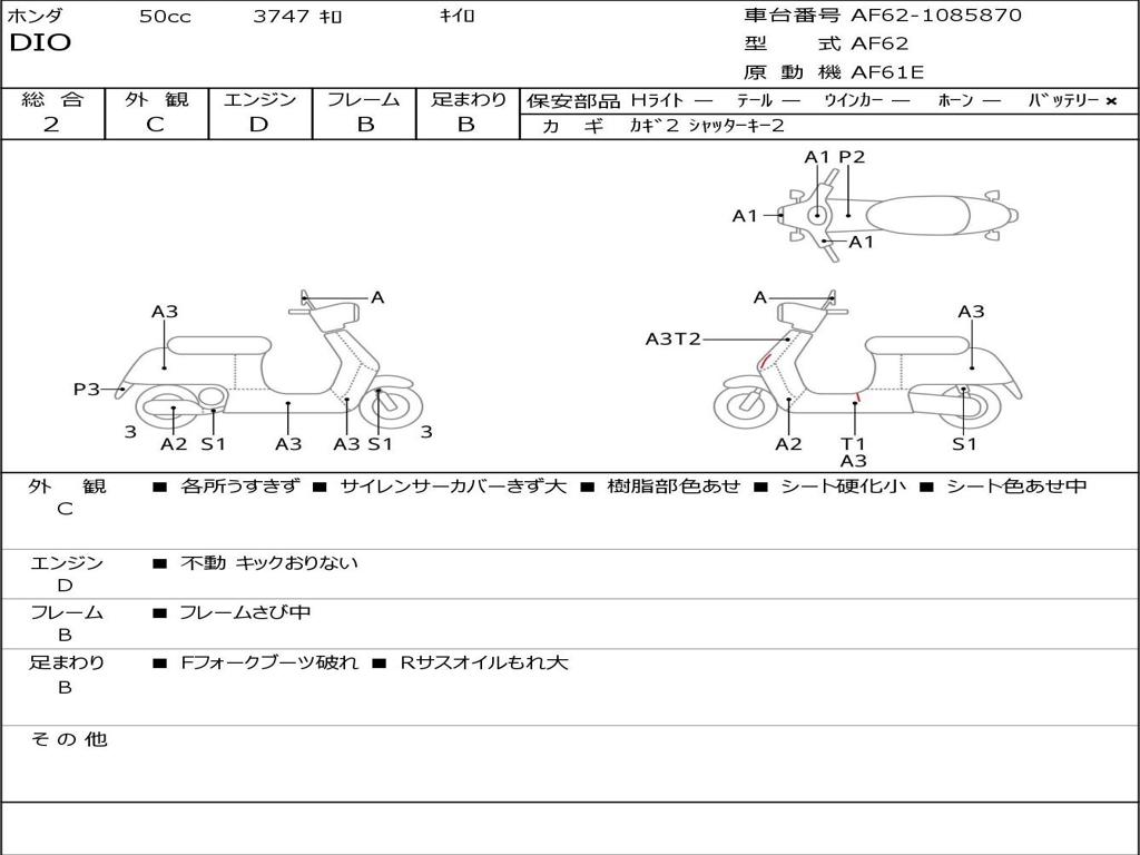 | Номер рамы / VIN | AF62-1085870 |