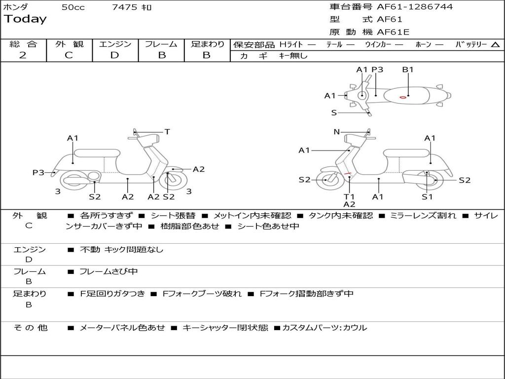 | Номер рамы / VIN | AF61-1286744 |
