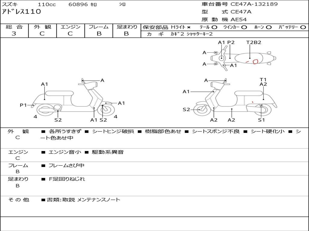 | Номер рамы / VIN | CE47A-132189 |