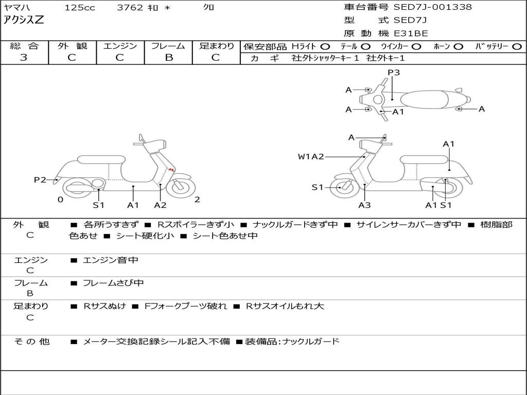 | Номер рамы / VIN | SED7J-001338 |