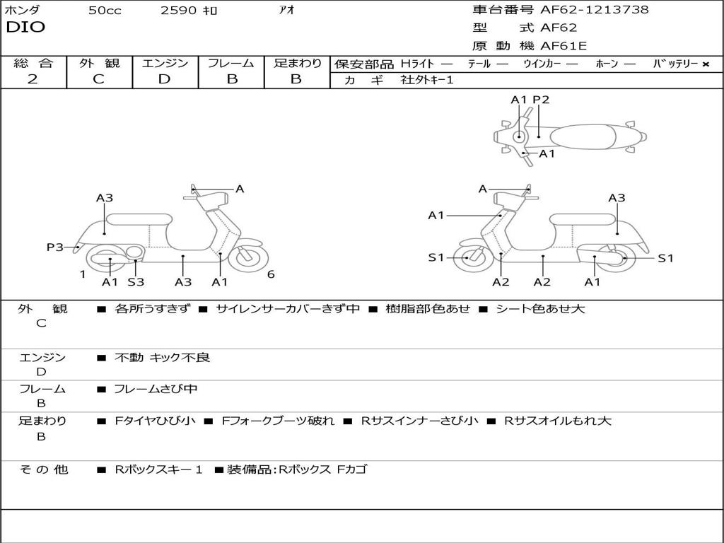 | Номер рамы / VIN | AF62-1213738 |