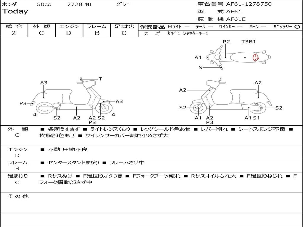 | Номер рамы / VIN | AF61-1278750 |