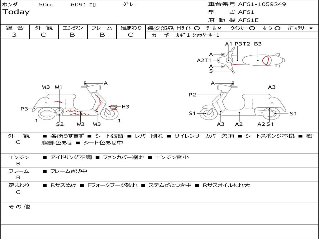 | Номер рамы / VIN | AF61-1059249 |