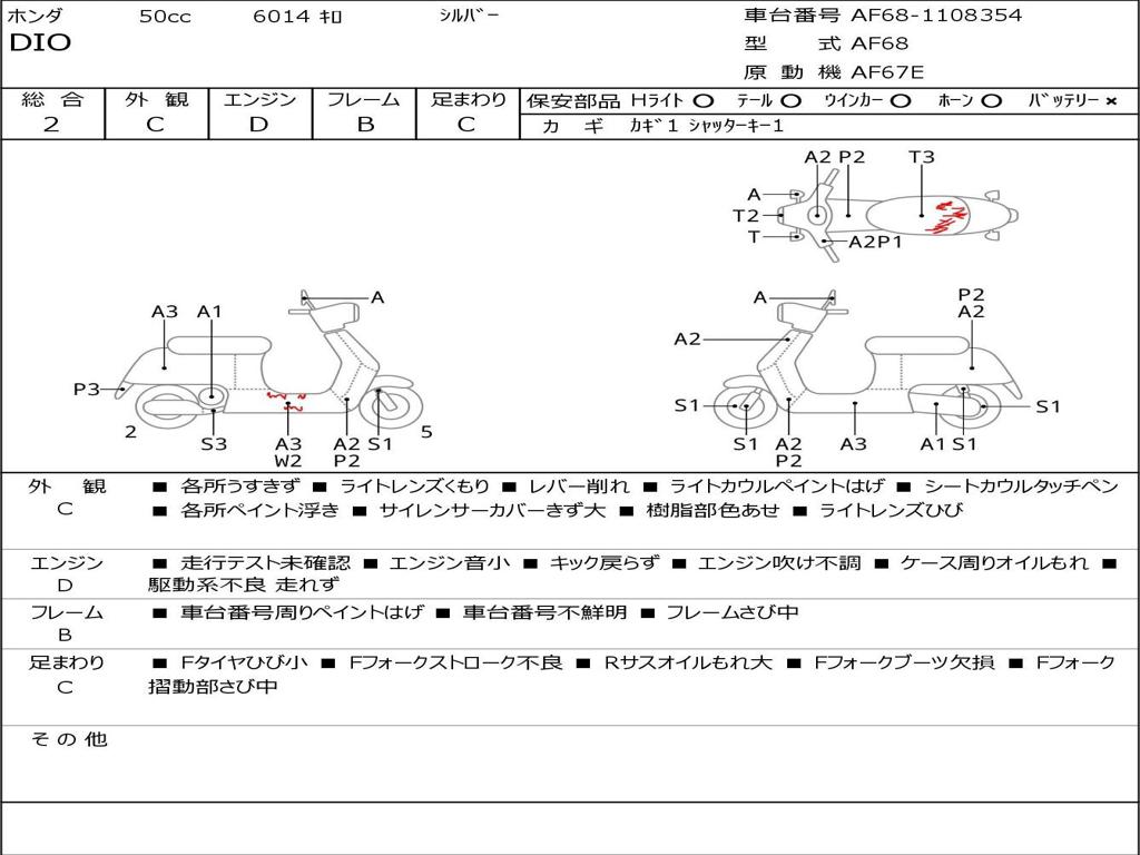 | Номер рамы / VIN | AF68-1108354 |