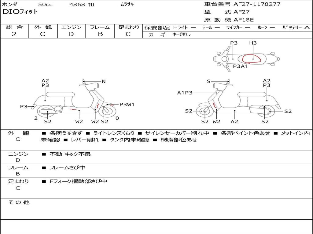 | Номер рамы / VIN | AF27-1178277 |