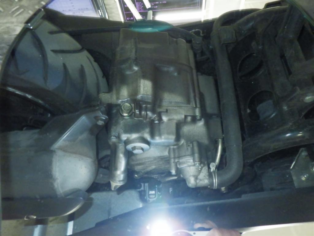 | потек масла | повсюду, слева снизу <много> |