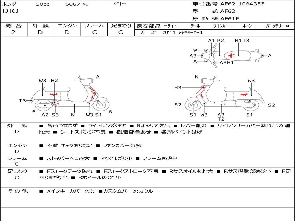 | Номер рамы / VIN | AF62-1084355 |