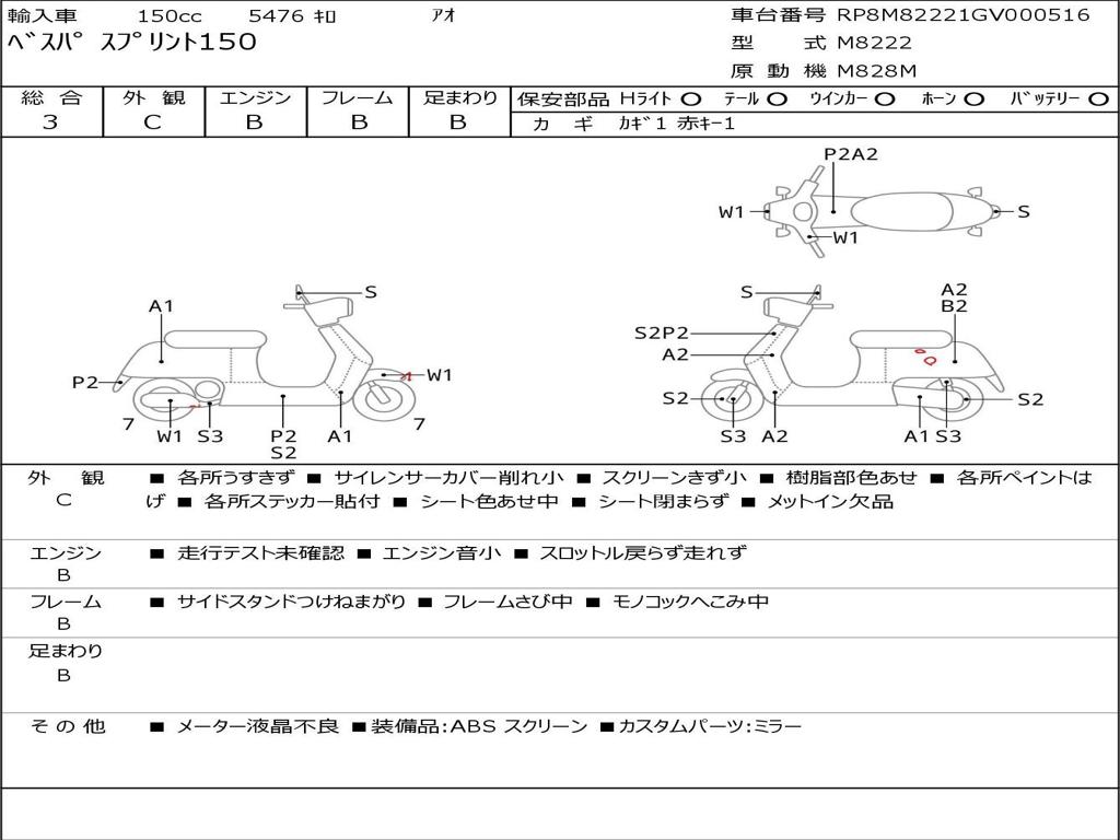 | Номер рамы / VIN | RP8M82221GV000516 |