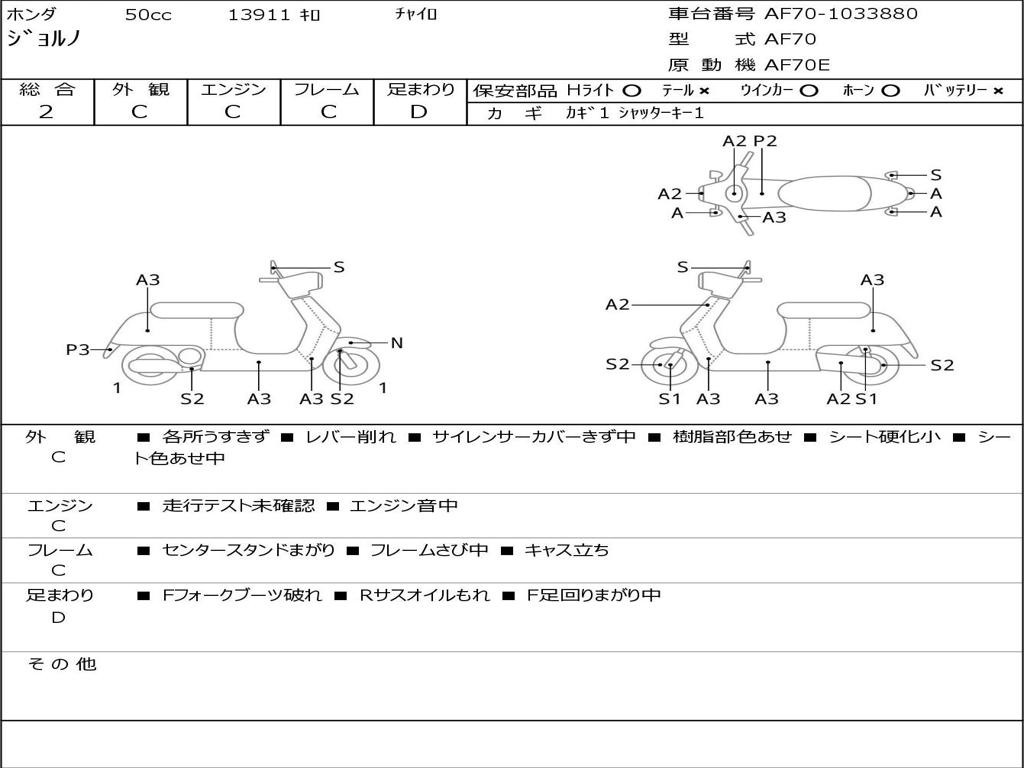 | Номер рамы / VIN | AF70-1033880 |