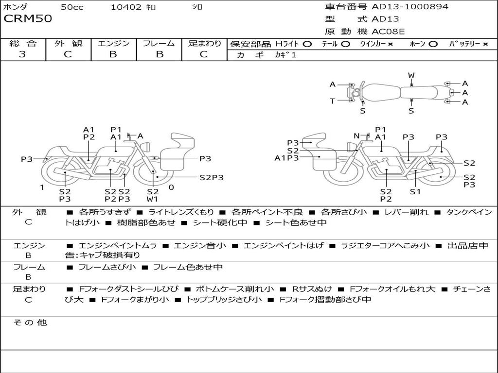 | Номер рамы / VIN | AD13-1000894 |