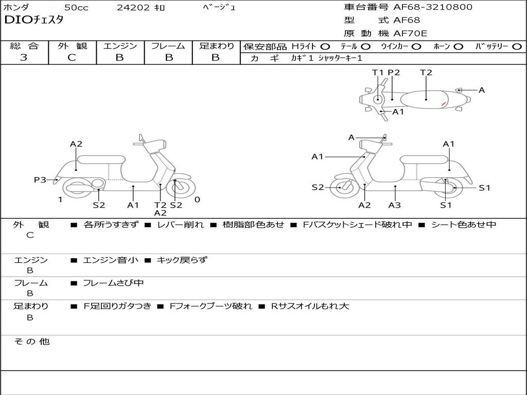 | Номер рамы / VIN | AF68-3210800 |