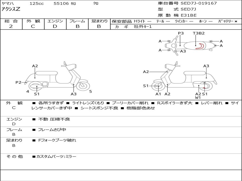 | Номер рамы / VIN | SED7J-019167 |