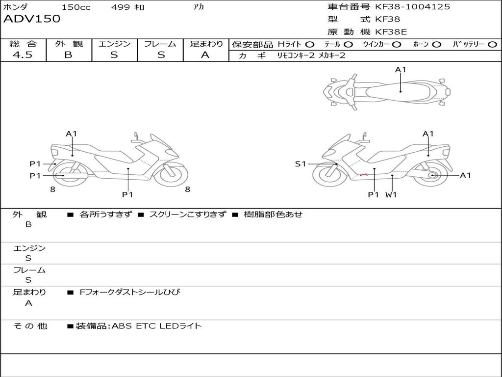 | Номер рамы / VIN | KF38-1004125 |