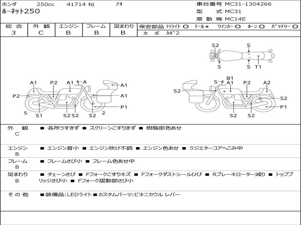 | Номер рамы / VIN | MC31-1304266 |