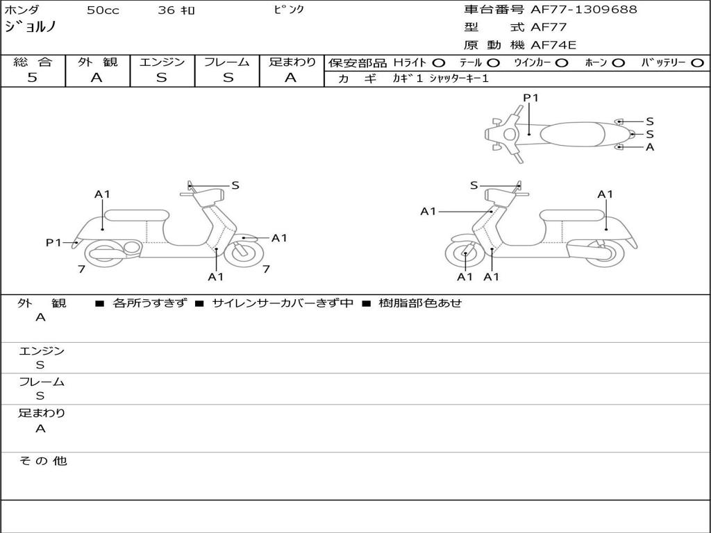 | Номер рамы / VIN | AF77-1309688 |