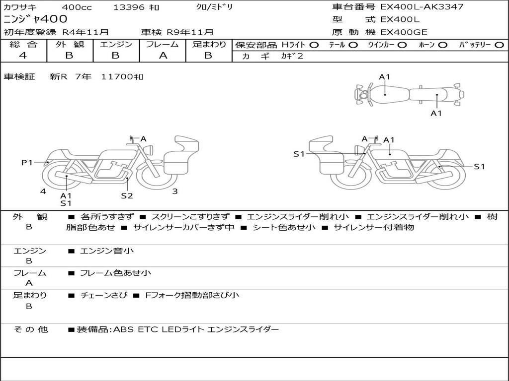 | Номер рамы / VIN | EX400L-AK3347 |
