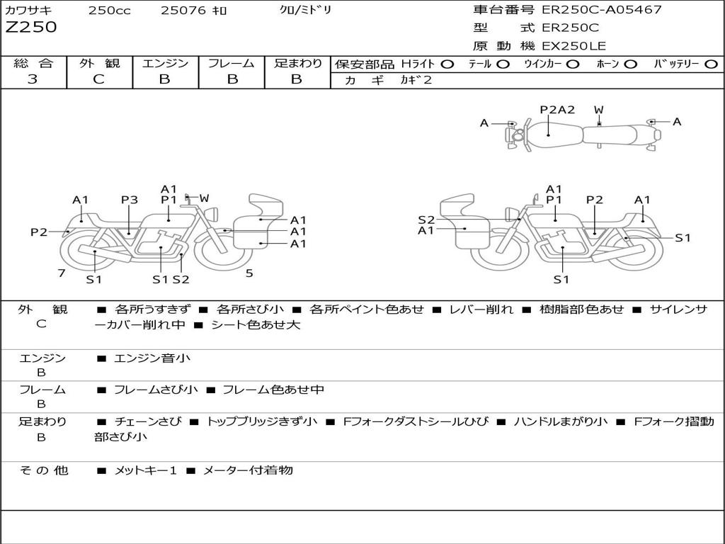 | Номер рамы / VIN | ER250C-A05467 |