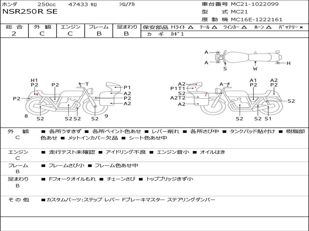 | Номер рамы / VIN | MC21-1022099 |