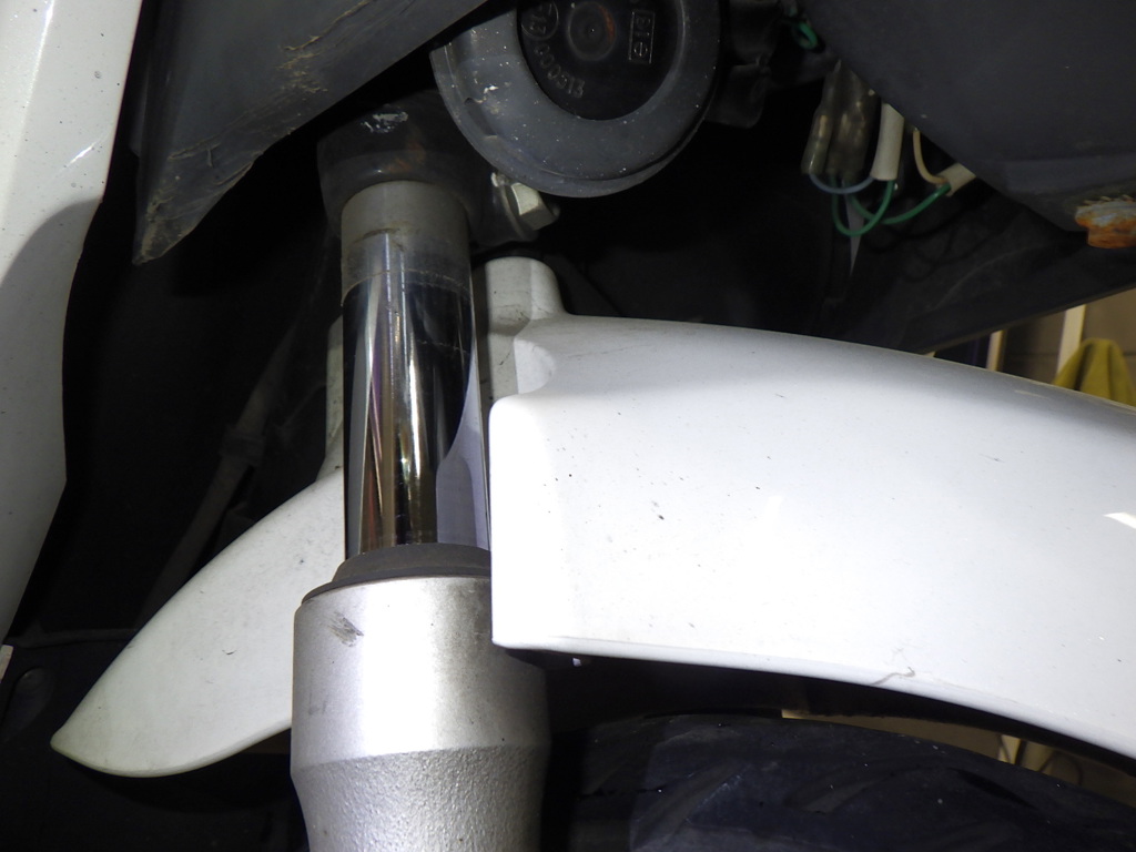 | внешняя часть вилки | царапины, следы коррозии <много>, потек масла <много>, слабый |