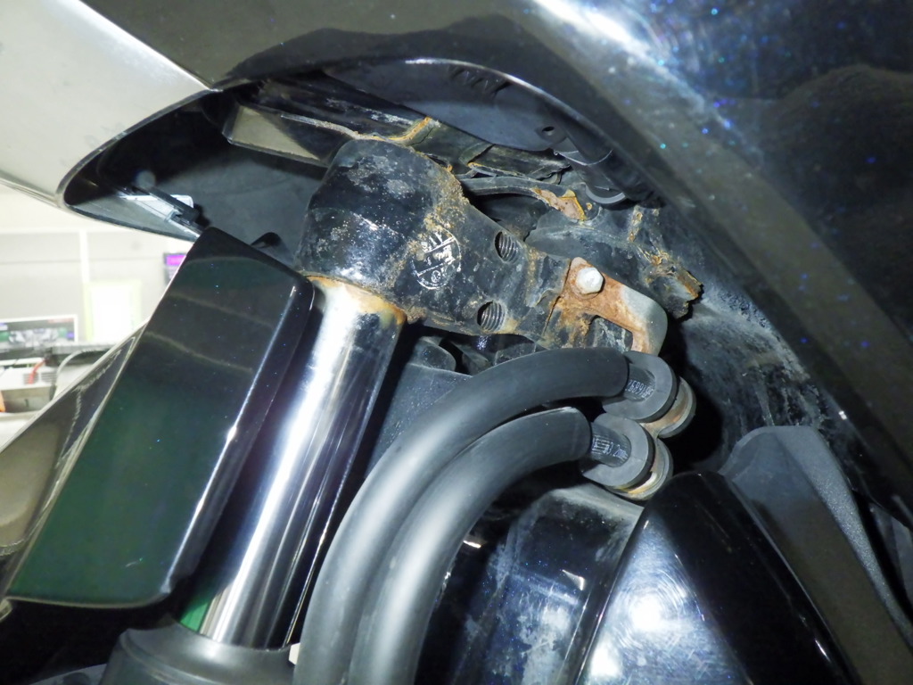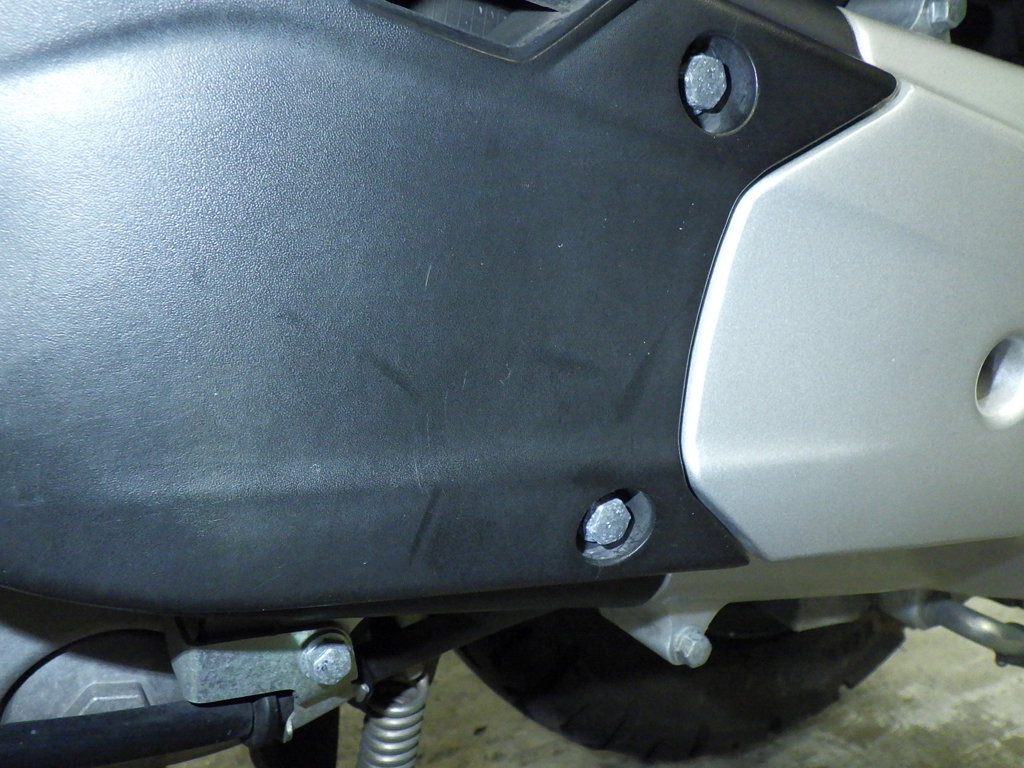 | снизу | царапины <много>, частичная подкраска, трещины |
