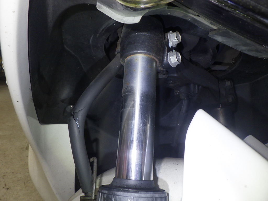 | внешняя часть вилки | потертость, потек масла <немного>, уровень шума |