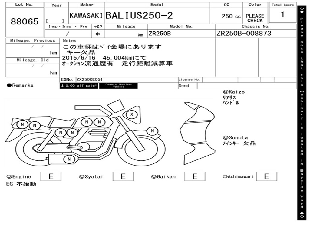 | Номер рамы / VIN | ZR250B-008873 |