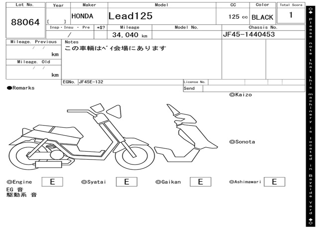 | Номер рамы / VIN | JF45-1440453 |
