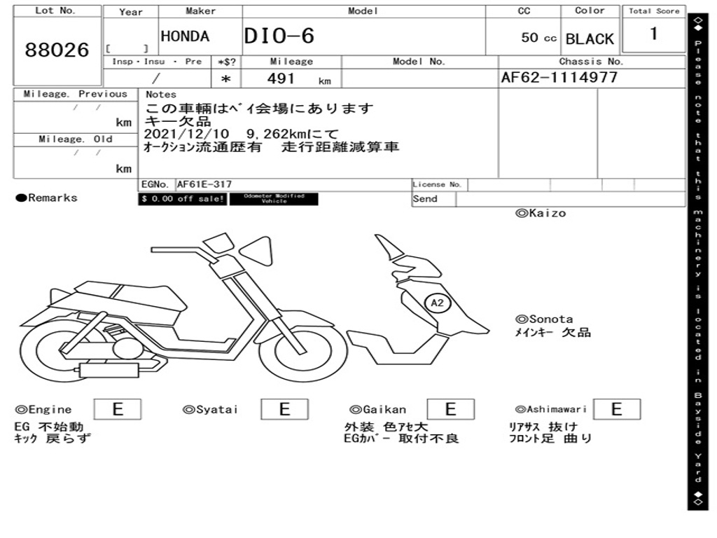 | Номер рамы / VIN | AF62-1114977 |