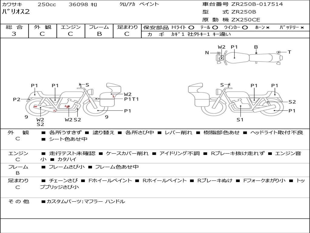 | Номер рамы / VIN | ZR250B-017514 |
