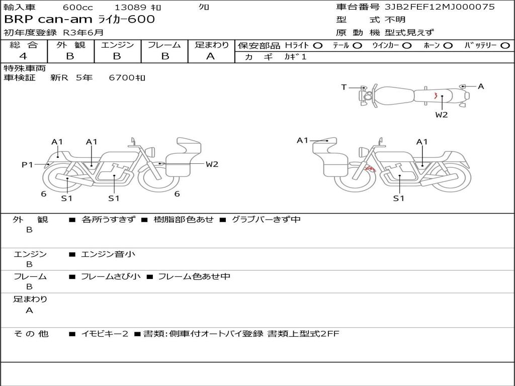 | Номер рамы / VIN | 3JB2FEF12MJ000075 |