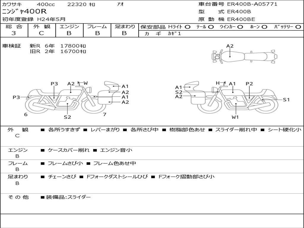 | Номер рамы / VIN | ER400B-A05771 |