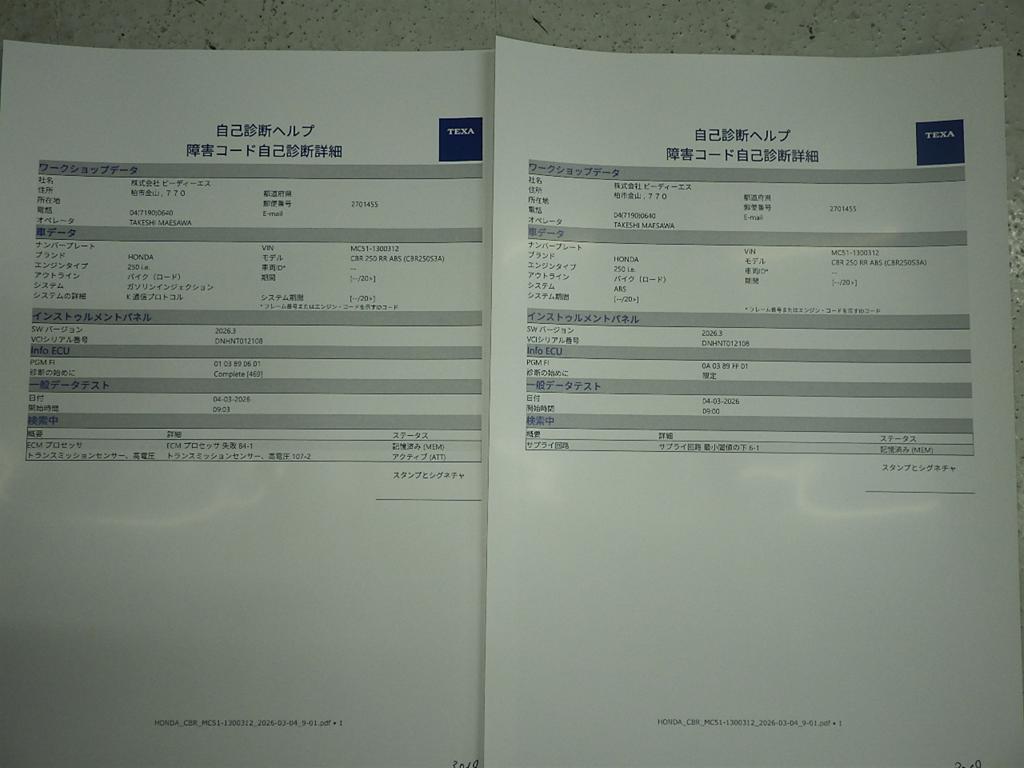 | Номер рамы / VIN | MC51-1300312 |
