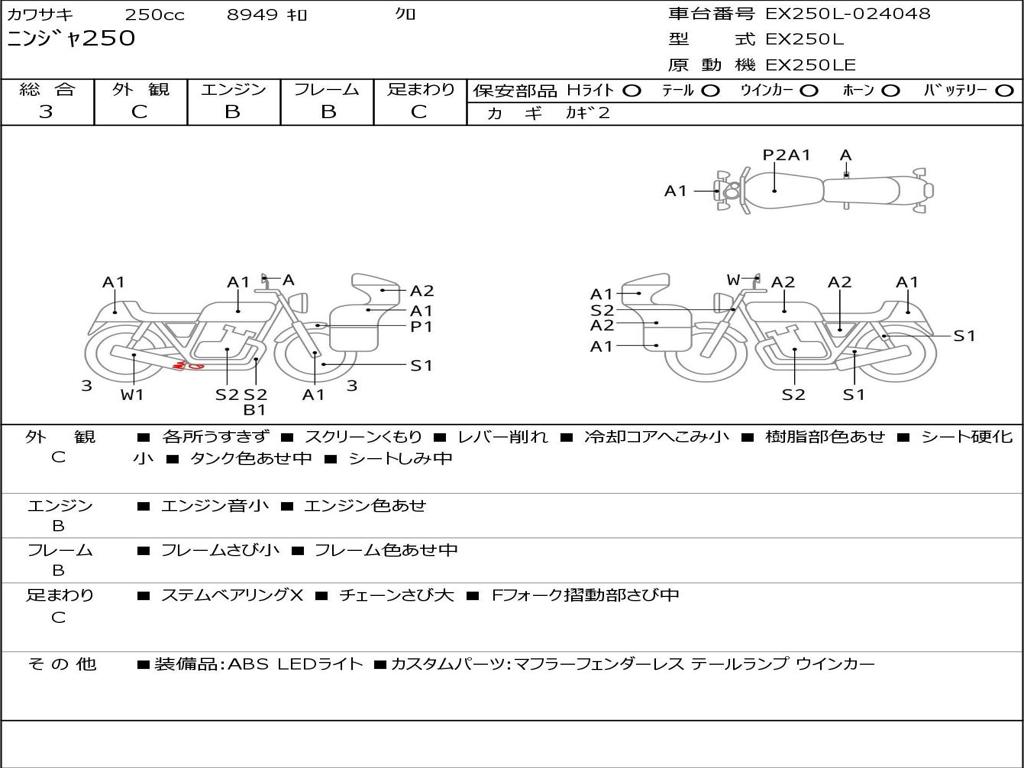 | Номер рамы / VIN | EX250L-024048 |