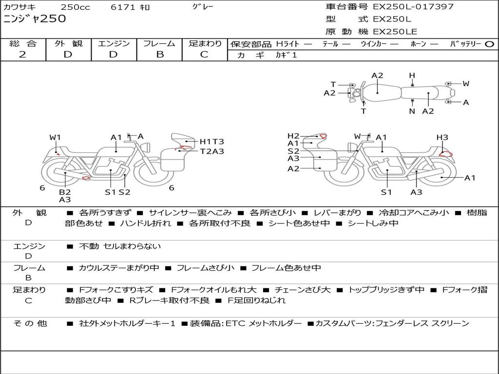 | Номер рамы / VIN | EX250L-017397 |
