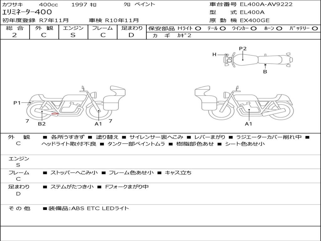 | Номер рамы / VIN | EL400A-AV9222 |