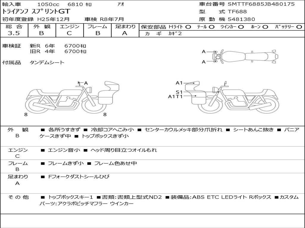 | Номер рамы / VIN | SMTTF6885JB480175 |