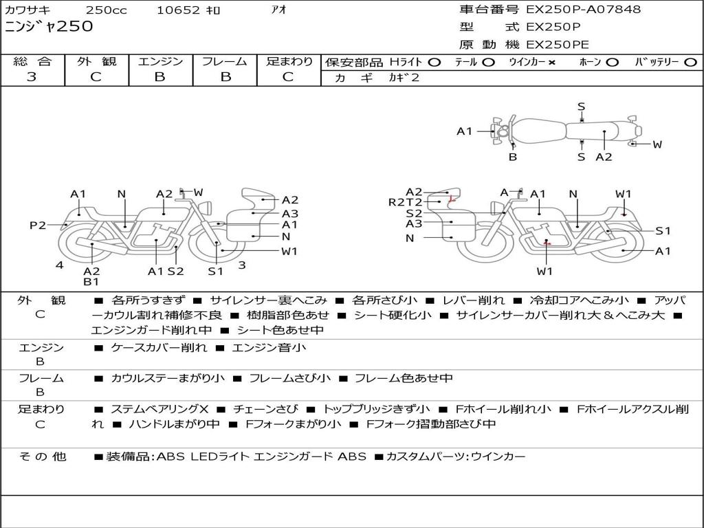| Номер рамы / VIN | EX250P-A07848 |