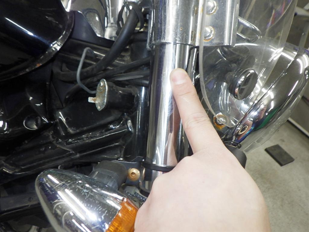 | внешняя часть вилки | царапины, потек масла |