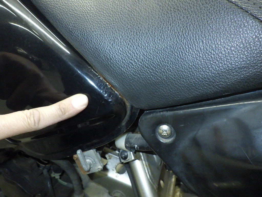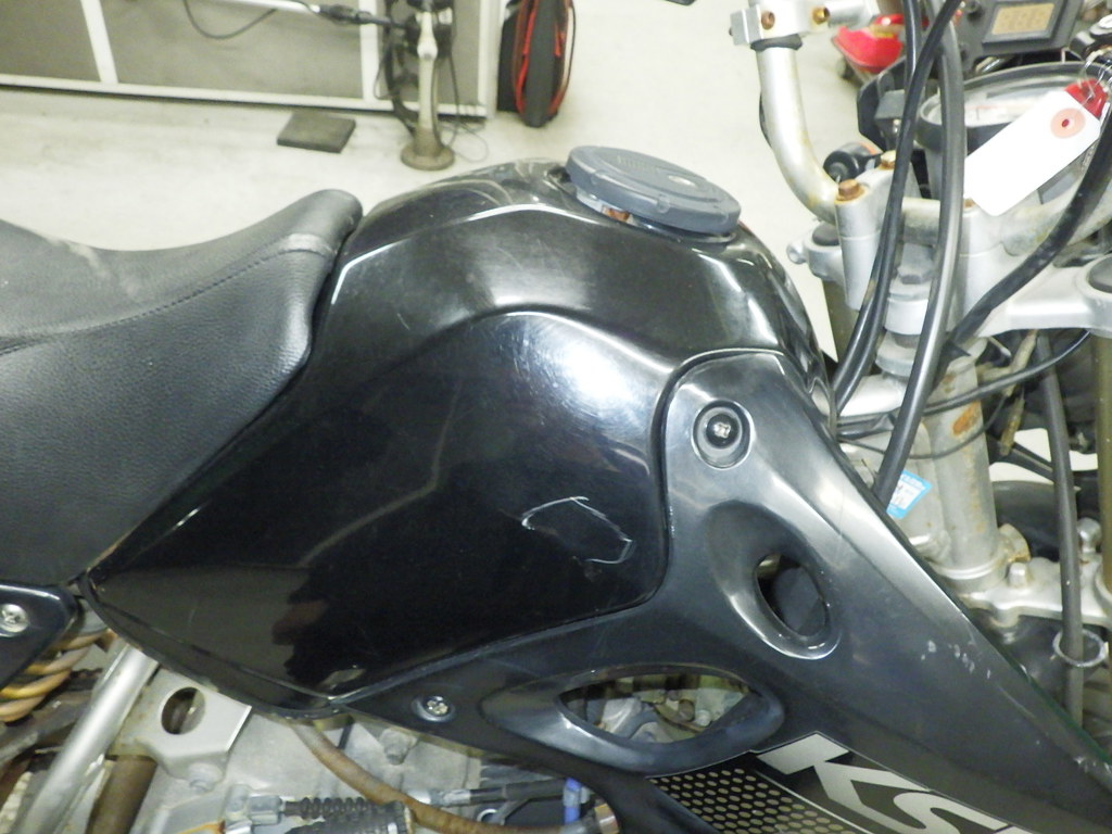 | бензобак | царапины <много>, следы коррозии <много>, вмятина <немного>, износ(потертость) краски, дырка |