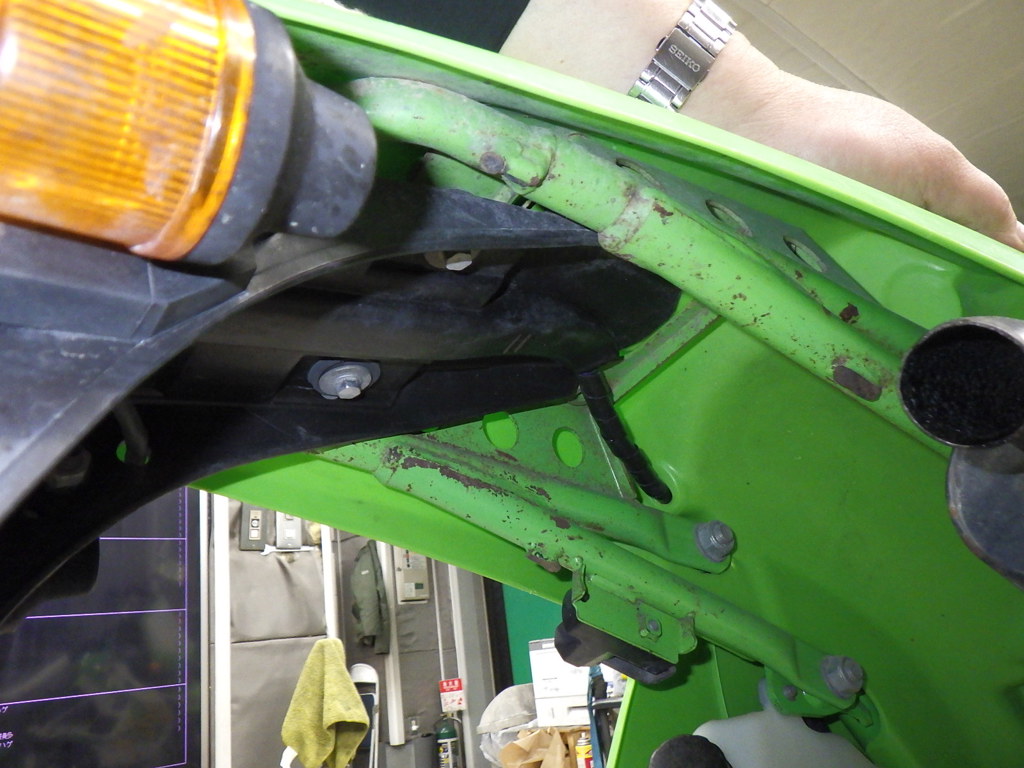 | сверху | неисправен шарнир, выцветание краски <много> |