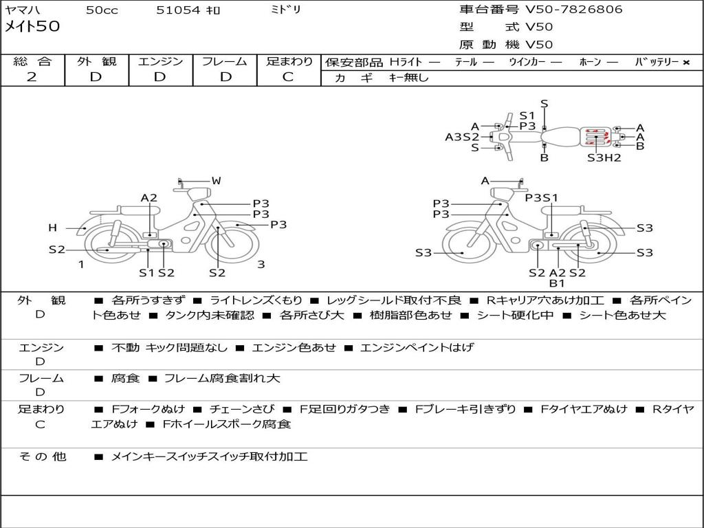 | Номер рамы / VIN | V50-7826806 |