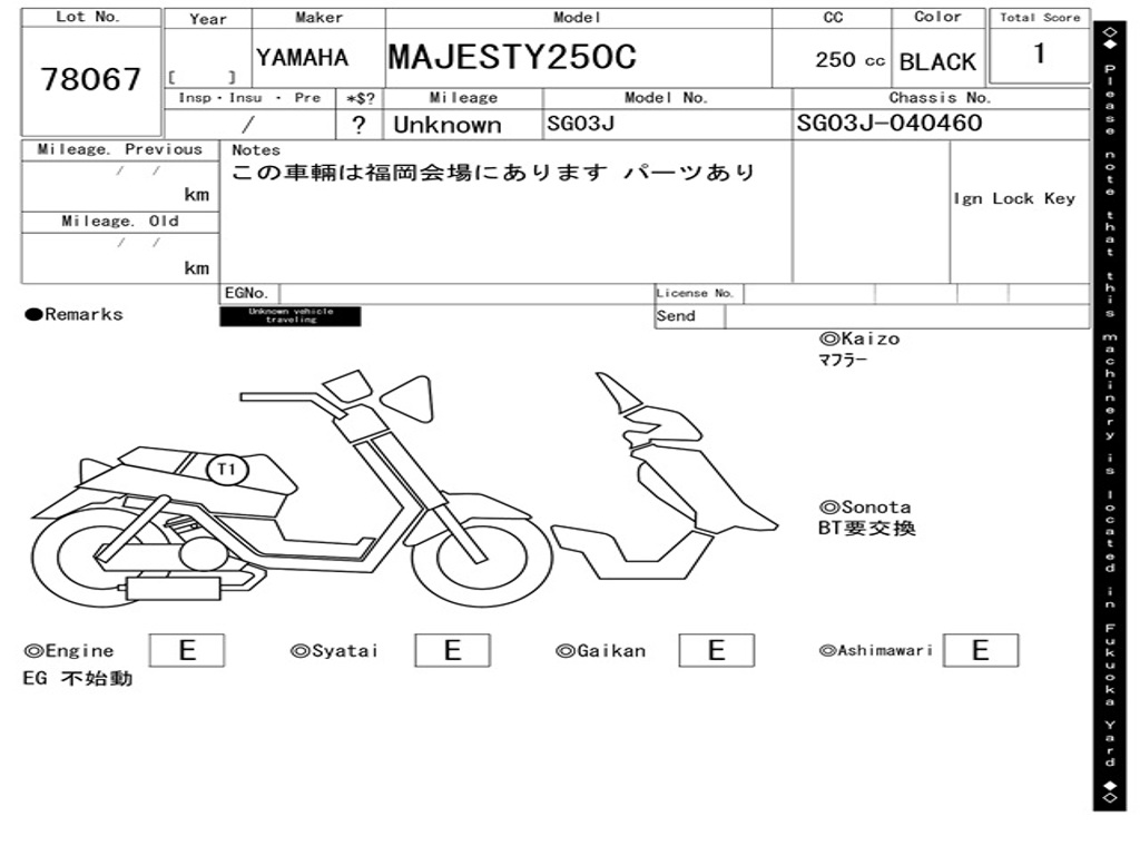 | Номер рамы / VIN | SG03J-040460 |