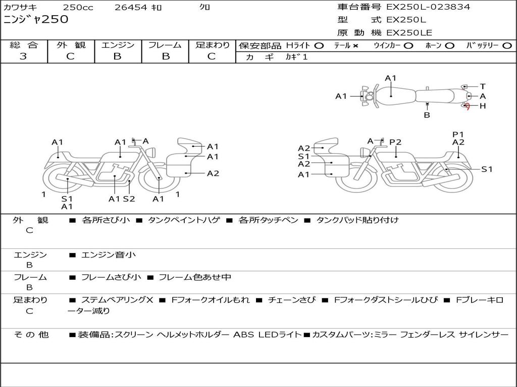 | Номер рамы / VIN | EX250L-023834 |