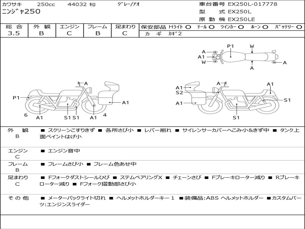 | Номер рамы / VIN | EX250L-017778 |
