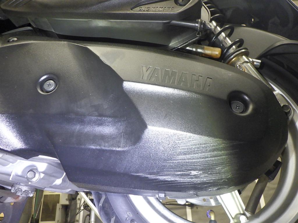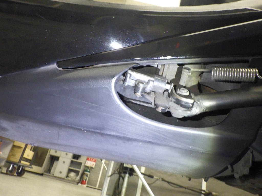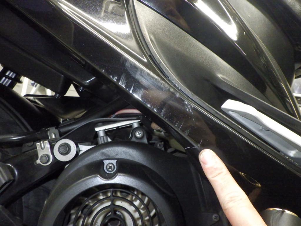 | снизу | царапины <много>, частичная подкраска, трещины |