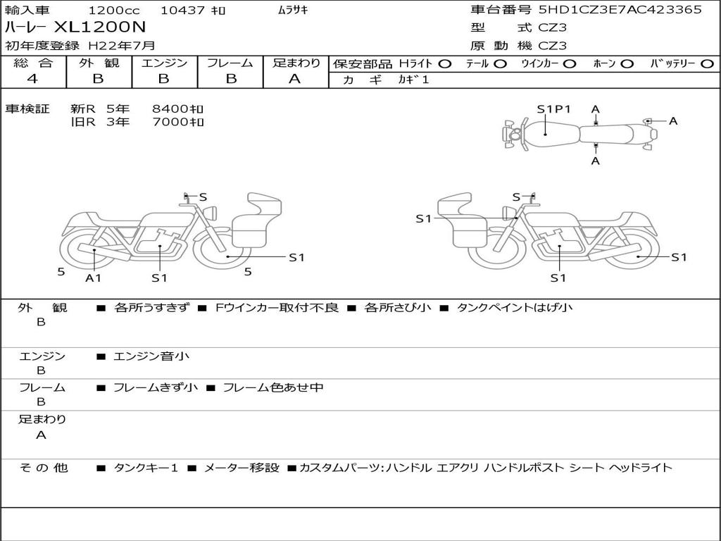 | Номер рамы / VIN | 5HD1CZ3E7AC423365 |