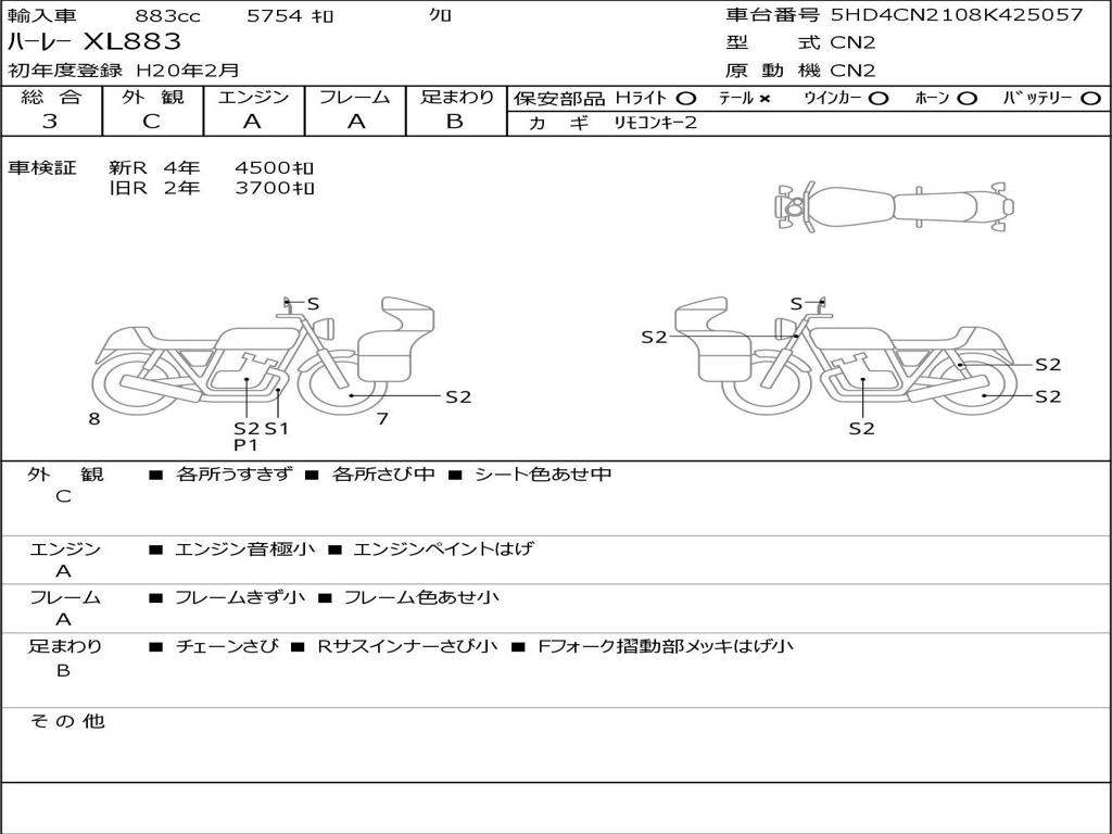 | Номер рамы / VIN | 5HD4CN2108K425057 |